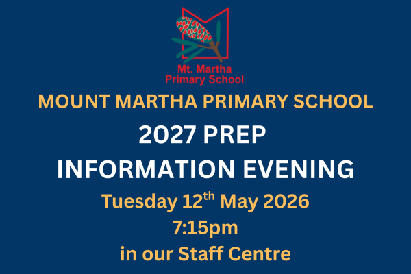 We are hosting our 2027 Prep Information Evening on Tuesday 12th May 2026 at 7:15pm in our Staff Centre.