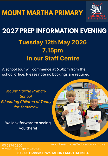 We are hosting our 2027 Prep Information Evening on Tuesday 12th May 2026 at 7:15pm in our Staff Centre.